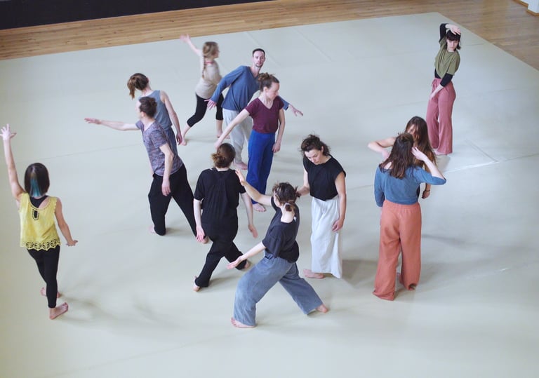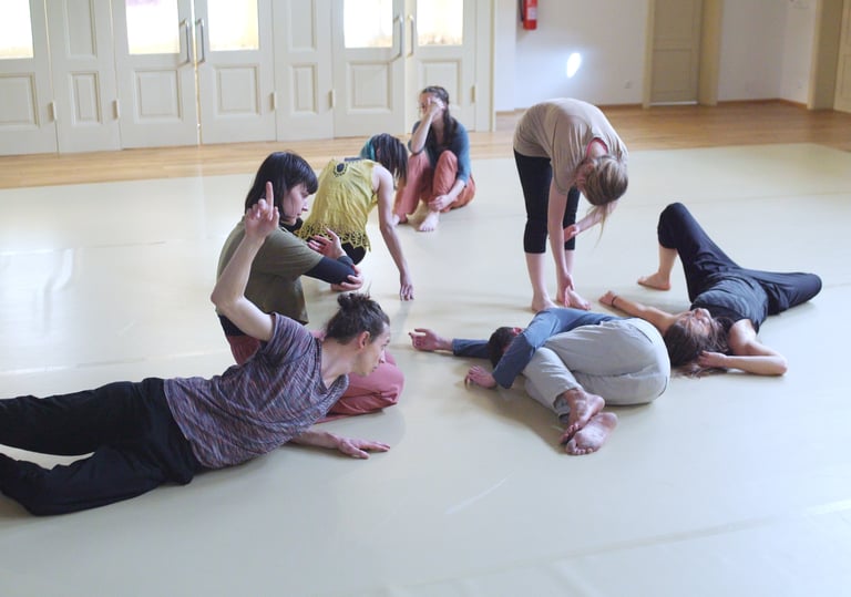Kontaktní improvizace – dotek, váha, reakce s zemí a s druhými.